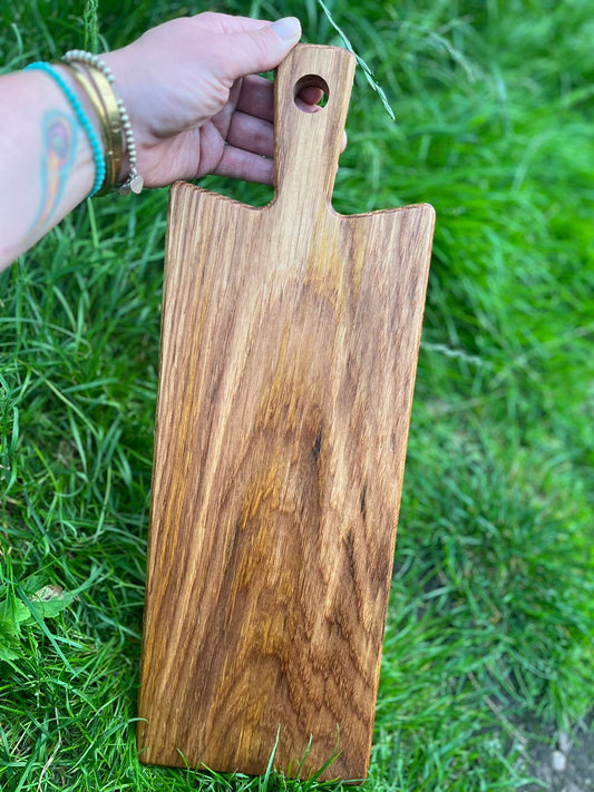 Landhausstil Schneidebrett aus Eiche mit Griff und Lederband
