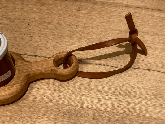 Servierbrett aus Eiche für Marmelade mit Griff und Lederband!