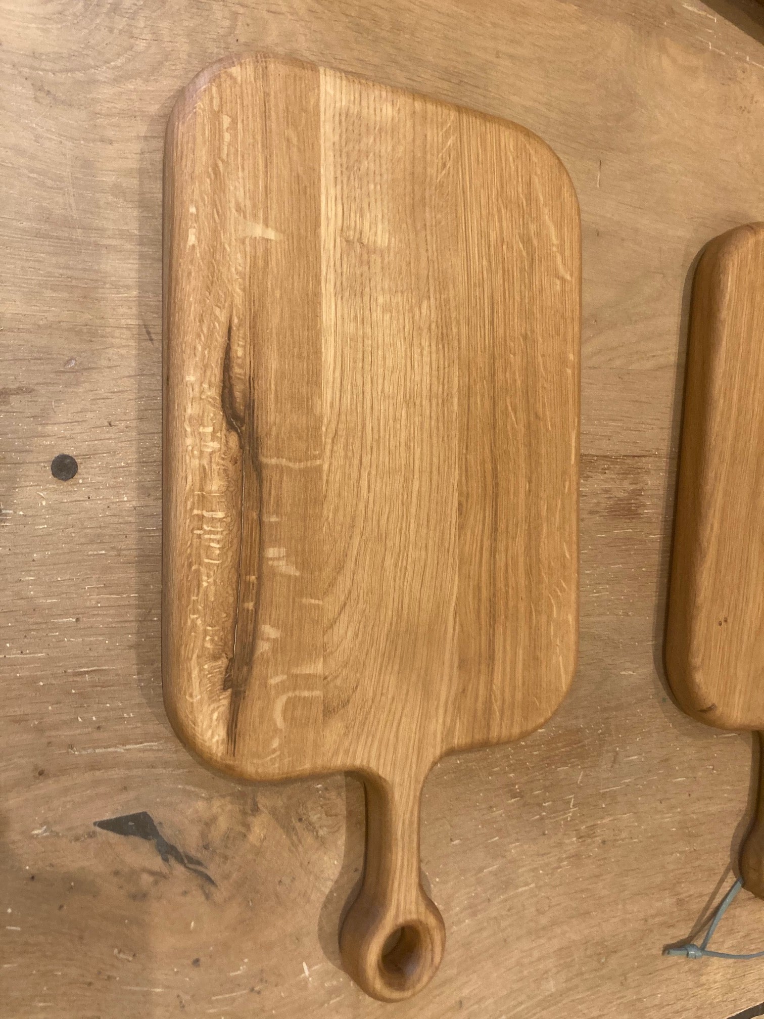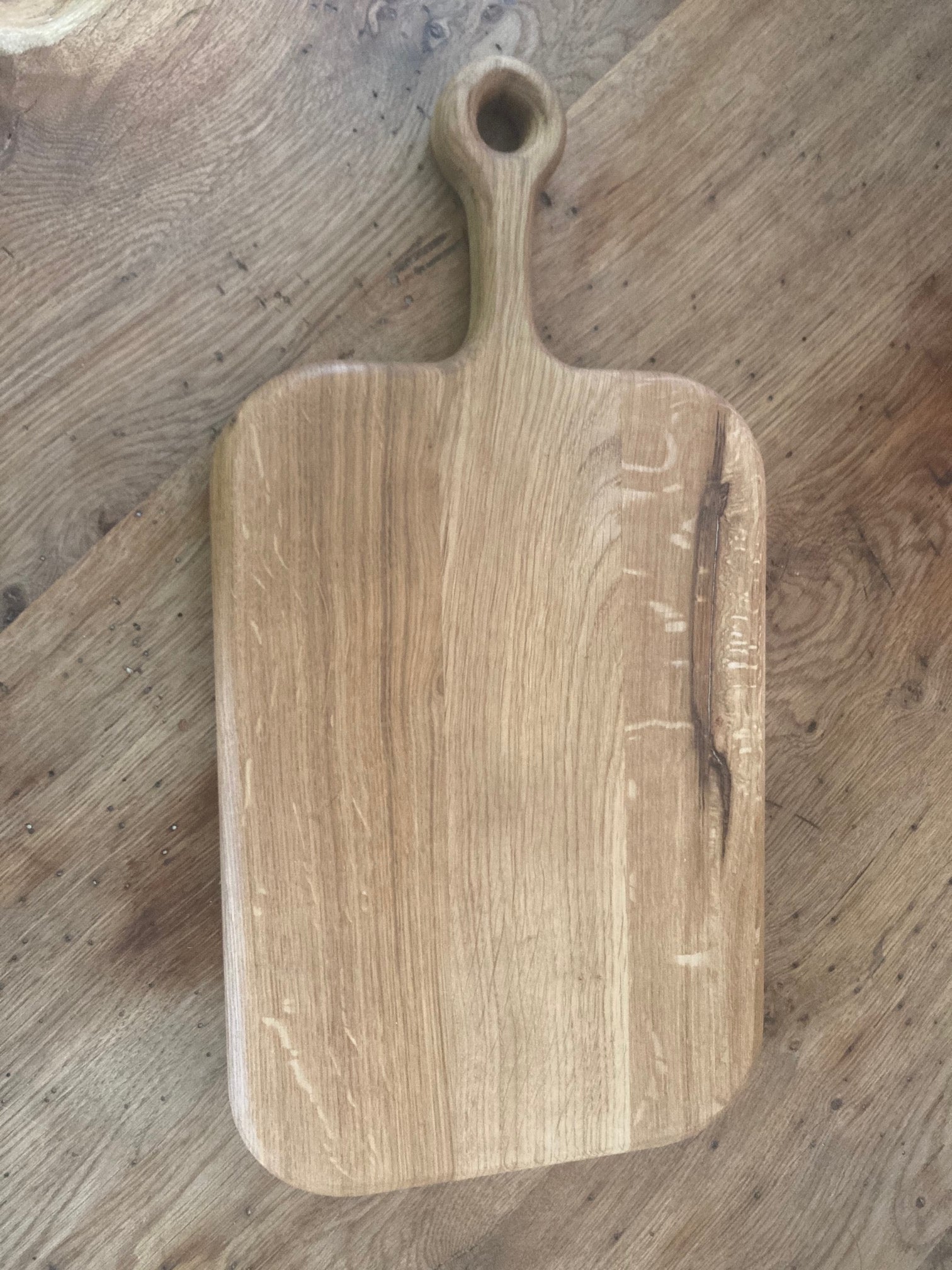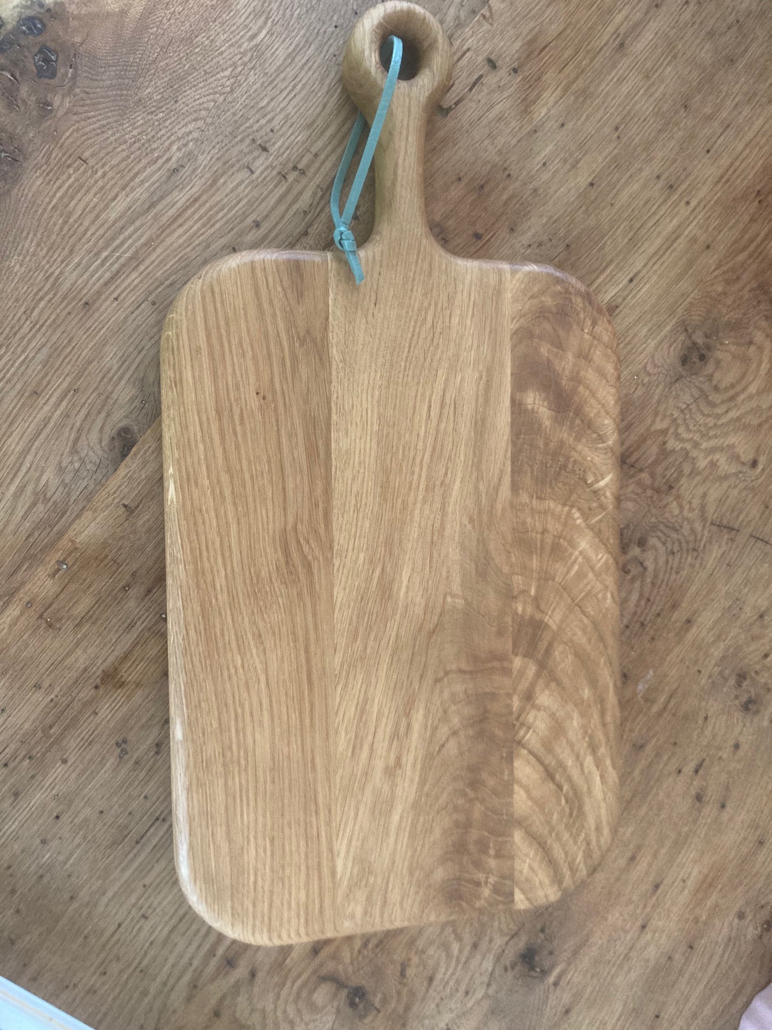 Landhausstil Schneidebrett aus Eiche mit Griff und Lederband