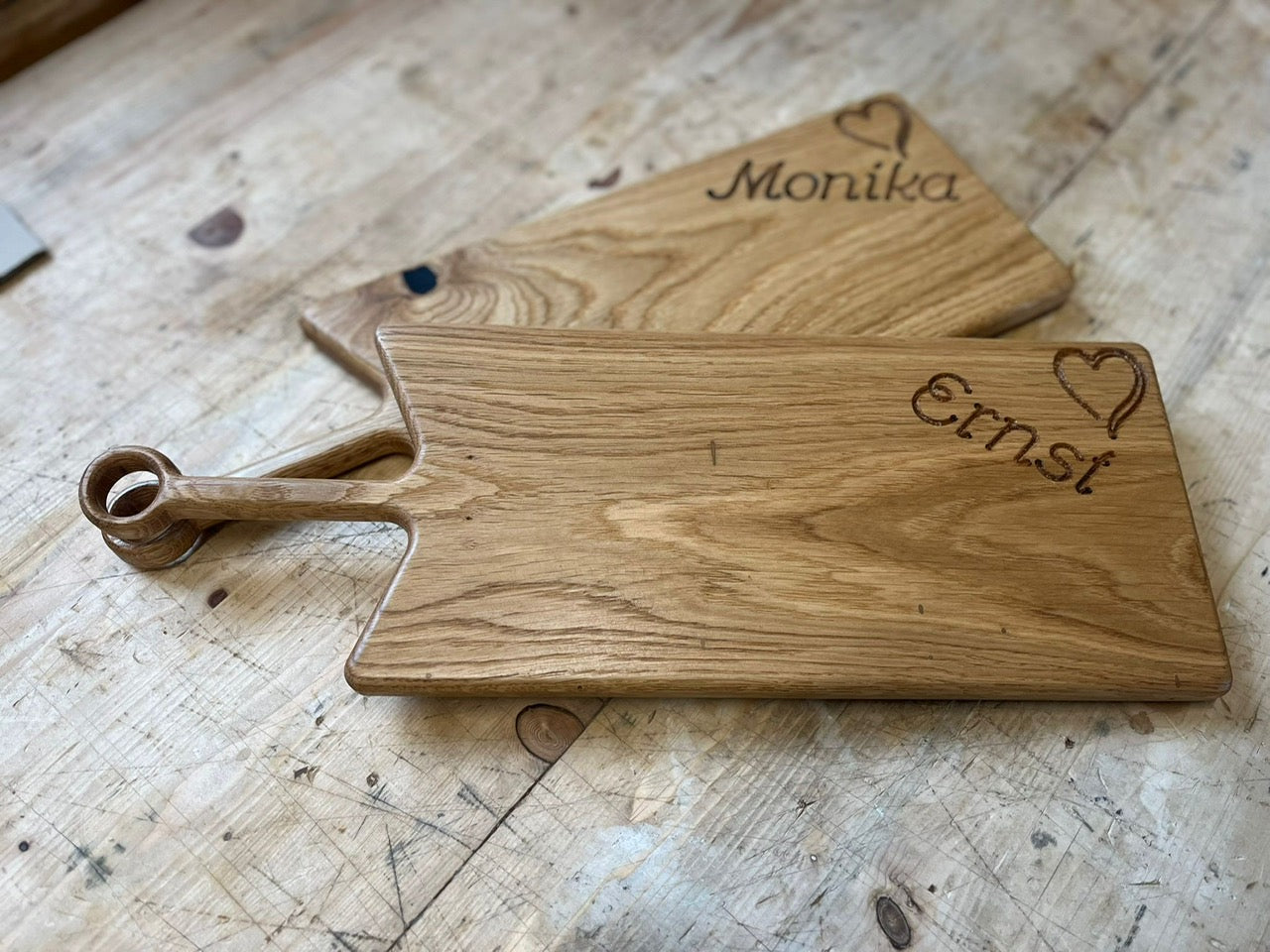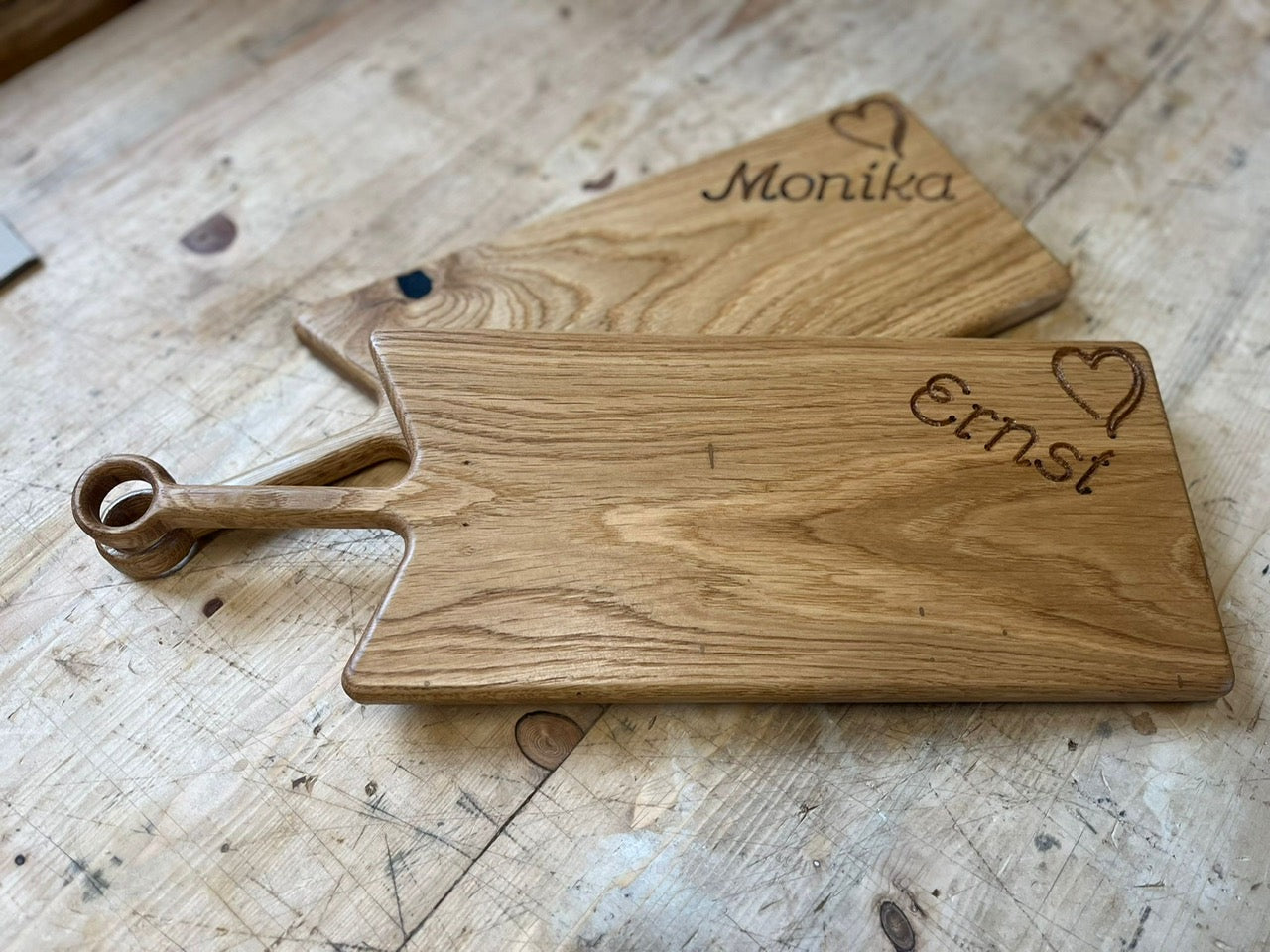Schneidebrett aus Eiche mit individueller Fräsung – persönliches Unikat für deine Küche