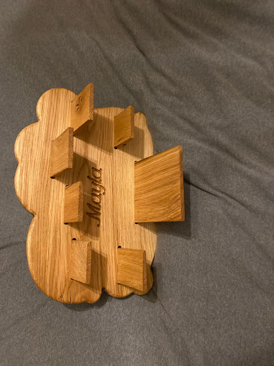 Dieses liebevoll gefertigte Tonie-Regal in Wolkenform bringt Ordnung ins Kinderzimmer und setzt gleichzeitig die Toniebox und Figuren stilvoll in Szene. Gefertigt aus 15 mm starker, geölter Eiche ist es nicht nur ein Blickfang, sondern auch besonders robust und langlebig.